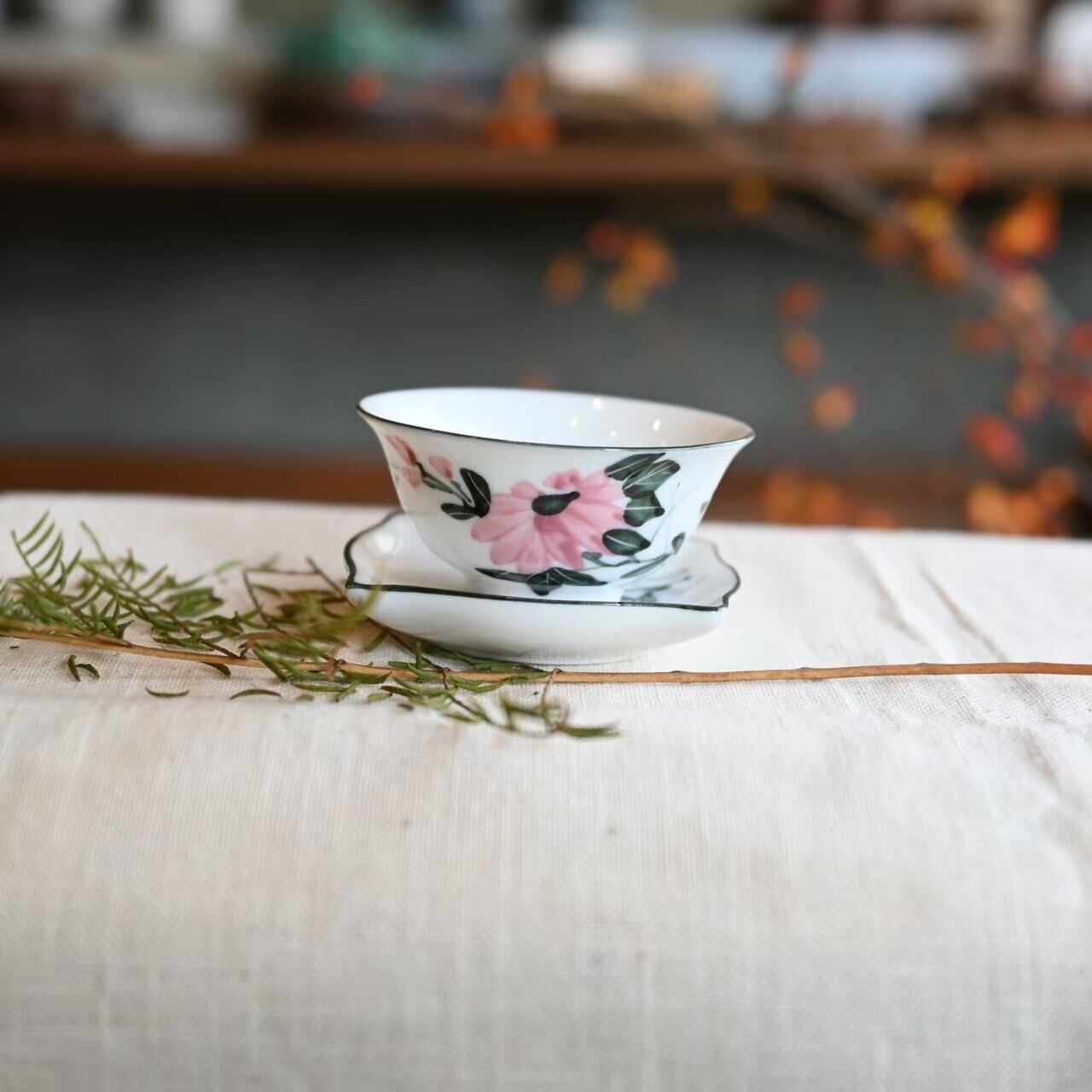 0304 潮州 白磁 ピンクの菊 | OWARI ごえんや